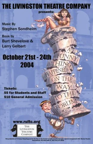 Stephen Sondheim's A Funny Thing Happened on the Way to the Forum provides something familiar, something peculiar, something for everyone- a comedy tonight! The story line follows the hysterical antics of a cunning and hilarious slave, Pseudolus as he tries to win the hand of Philia, a courtesan for his master, Hero, in return for his freedom. Forum will keep you on the edge of your seat, as you anxiously await the next comic resolution to Pseudolus's latest conflict. This highly suspenseful and sidesplitting farce will keep you laughing until the curtain.