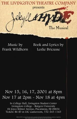 This modern musical thriller is a chilling romantic adaptation of the classic novel by Robert Louis Stevenson. A noble scientist, hoping to remove evil from society, instead invents a potion that unleashes the beast lurking within the human soul.